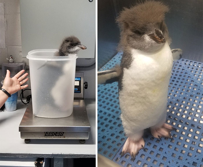 ▼企鵝寶寶的頭髮很濃密嘛。