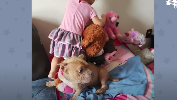 這隻比特犬很珍惜新家,也很愛牠的家人。小女孩給了牠一個被愛的機會,牠應該會用一生的忠誠來回報吧。