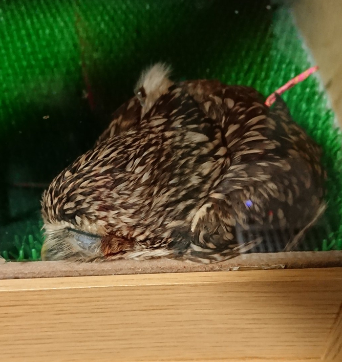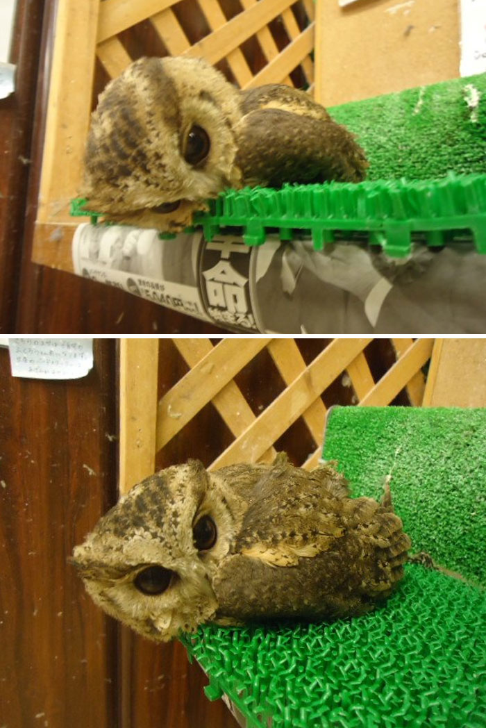 ▼在野外看到的貓頭鷹寶寶也是趴著睡的。