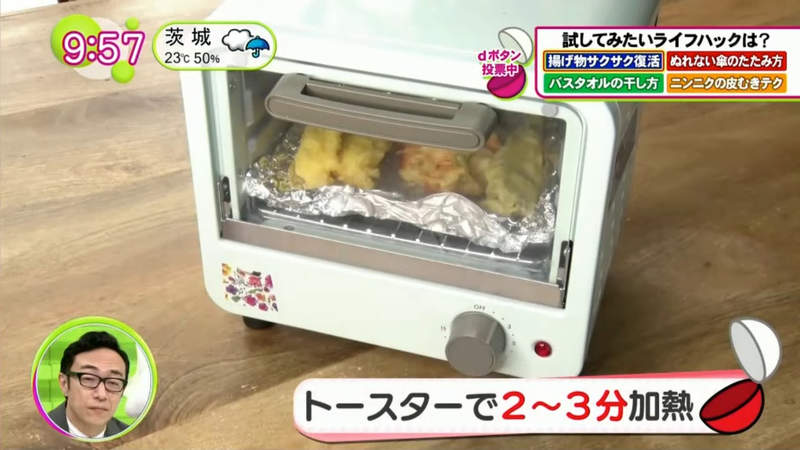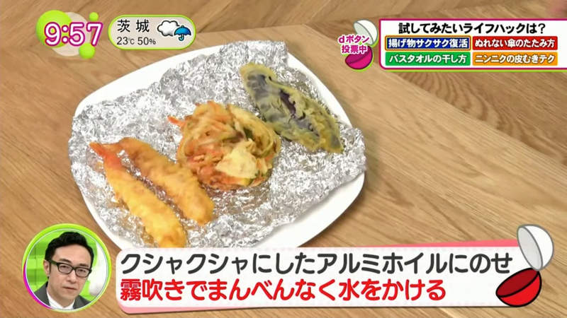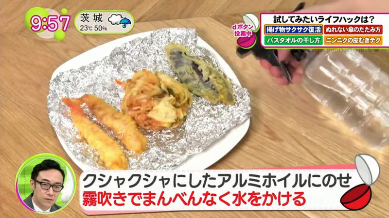 ▼日本富士電視台的綜藝節目《ノンストップ!》分享了一個讓炸物復活的方法,首先準備以下3個東西:烤箱、鋁箔紙、裝有水的噴霧器。