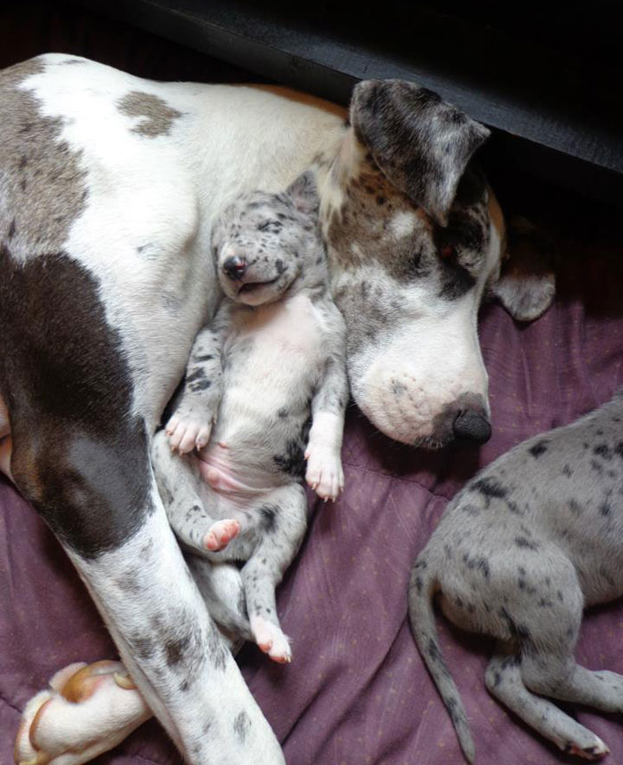 ▼15.可愛的小大丹犬和媽媽在一起的溫馨時刻。