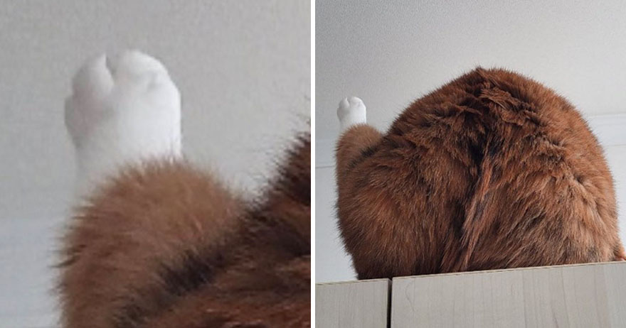 2021年07月01日快來看貓咪的Cosplay~韓國一位網友家中有一隻4歲左右的三花貓「核桃(호두)」。有一天貓咪坐在衣櫃上,抬起腳腳舔肚肚上的毛,主人在後方偷偷拍照,結果發現牠低頭、抬腳的背影非常像烤雞。主人將照片po到推特上,網友們紛紛笑說:「口水都流下來了。」