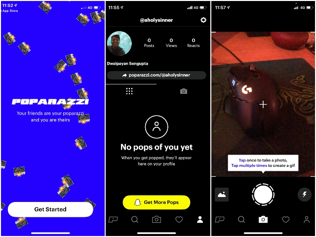▼Poparazzi可以只拍一張照片,也可以連拍九張,變成連續動態圖。它沒有美肌濾鏡,也不會顯示按讚數量、追蹤的人數,甚至不能留言,只能夠按對方Emoji代表自己的心情。