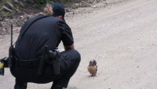 2023年06月18日小貓頭鷹未免太可愛了!最近美國科羅拉多州圓石郡(Boulder County)發生了一件趣事。一位警察開車途中發現前方道路中央有一個小黑點,似乎是什麼野生動物。她連忙停車過去查看,擔心小動物在路上不安全。等她走近才看清那是一隻毛茸茸的小貓頭鷹。