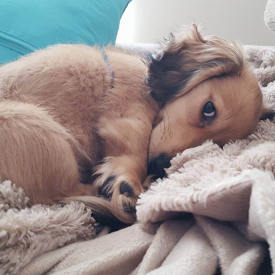 ▼小狗們好像都不太喜歡中規中矩躺在小床上睡覺。