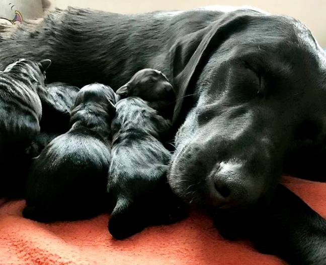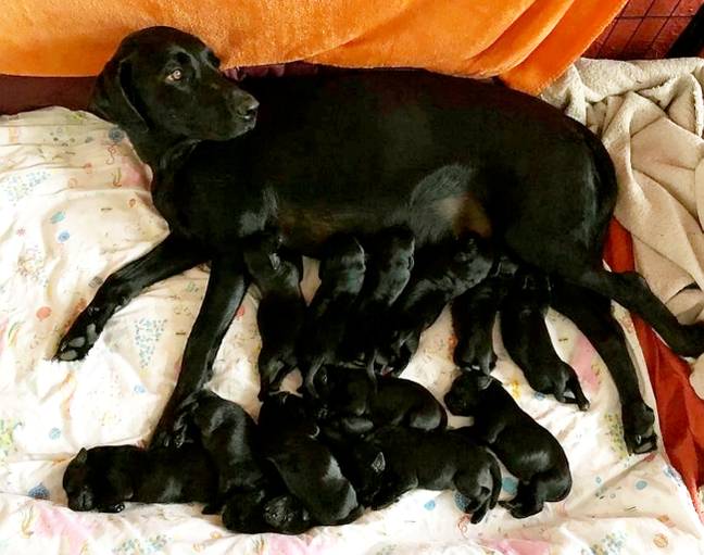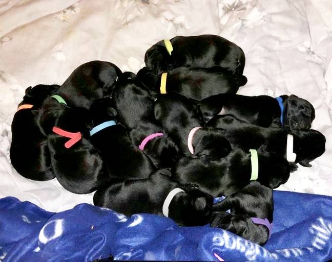 拉拉媽咪超會生! 一次產下13隻「黑到發亮」小奶汪:墨水倒太多啦!