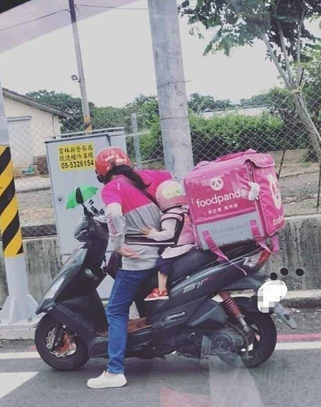 ▼照片中的小女孩被用粉紅色的背帶綁在媽媽和外送箱中間,而媽媽似乎正在替女兒調整一個更舒適的角度。網友們看到這張照片後,紛紛留言替這位要一邊帶孩子、一邊工作的媽媽加油、表示關心,有網友則表示自己很懂這種「沒人幫忙帶」的心情,也有人留言:「為母則強,加油!」