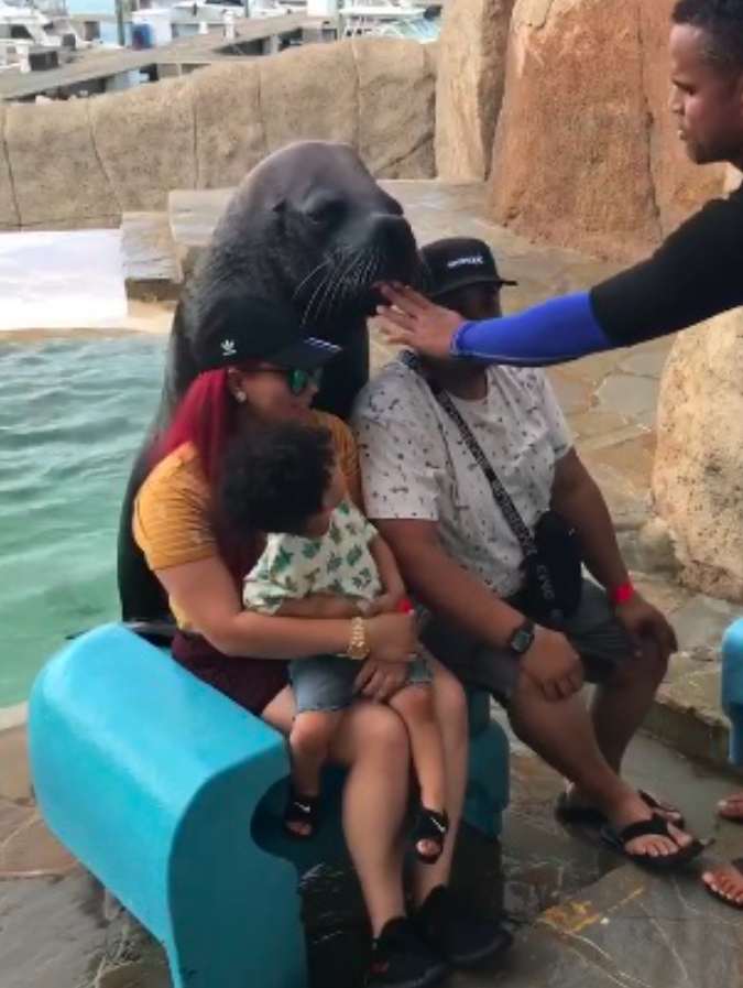 2021年07月07日海豹都懂得拍照的技巧?日前國外的一個家庭到水族館玩時看到了海豹表演。他們決定跟海豹合照留念,沒想到那隻海豹非常配合,牠乖乖定點站好,還露出甜甜的笑容,拍出的照片非常可愛。網友們看到後驚訝說:「工讀生快點出來吧~」