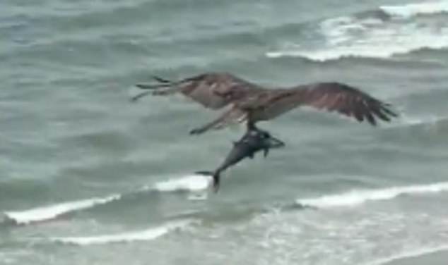 Anyone know what type of bird this is and is it holding a shark? #myrtlebeach 📽 Kelly Burbage pic.twitter.com/gc59xihiM7