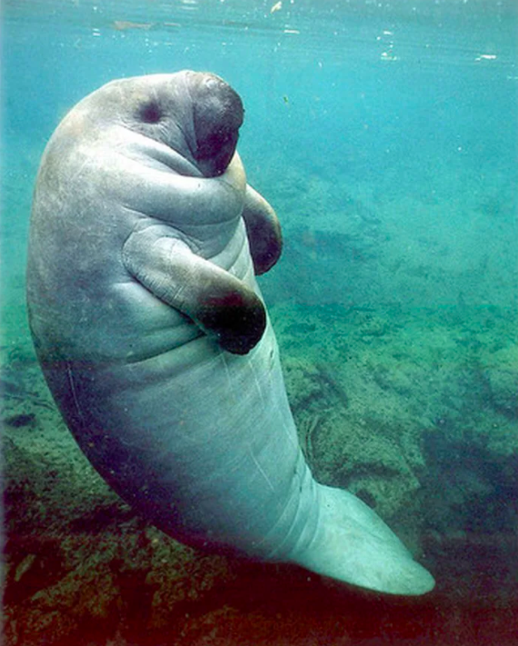 ▼海牛是一種很特別的海洋哺乳動物,牠們體型很大,卻是吃素的,主要以海草和其他水生植物為食 。海牛棲息在海域沿岸或河流中,這種動物行動特別緩慢,大部分時間都在慢慢划水,看起來竟然有幾分可愛。科學家認為,海牛是6千萬年前由陸地上的哺乳四足動物進化而來的。
