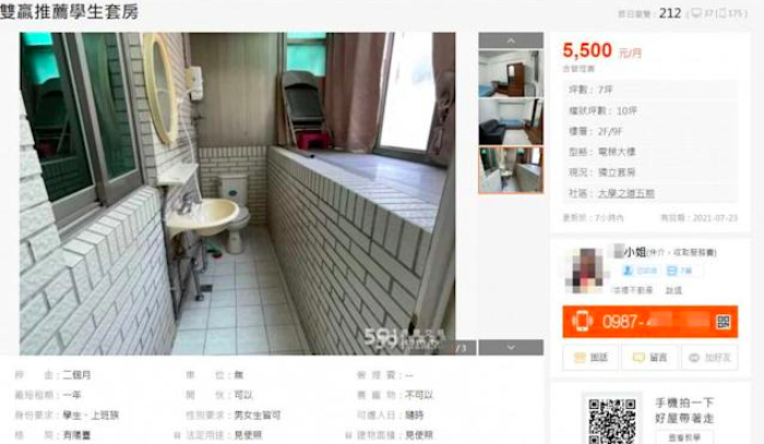 2021年07月07日日前桃園市龜山區銘傳大學周邊的一間租屋套房引發熱議。這間套房的月租金為5500元,但屋內沒有正規的衛浴空間,馬桶、蓮蓬頭都裝在陽台。這間「雙贏推薦學生套房」讓網友看傻眼,直呼:「雙贏的意思是,房東贏兩次!」