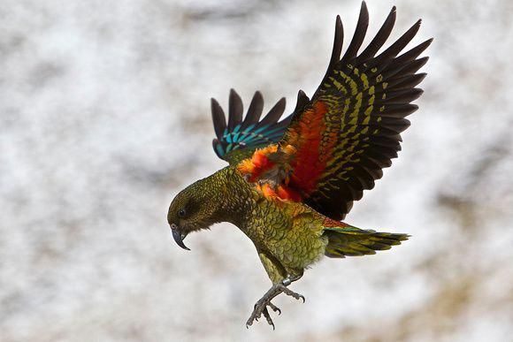 2021年07月07日世界上有很多羽毛華麗的鳥類,生活在紐西蘭南島高山地帶的紐西蘭啄羊鸚鵡(New Zealand kea)就是其中之一。牠們的身體大部分是橄欖綠色,頭頂和頸部是黃綠色。一般來說公鳥比母鳥的喙更彎曲。這是世界唯一的高山鸚鵡,但現在牠們的數量直線下滑,甚至有絕種的可能。