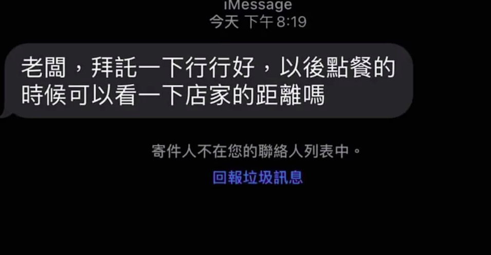 2021年07月08日這段時間很多人宅在家防疫,叫外送已經成為常態。一位網友在臉書社團「爆怨2公社」po文說,他訂了4.4公里外的餐點,外送員竟然傳訊說:「老闆,拜託一下行行好,以後點餐時可看一下店家的距離嗎?」原po非常火大:「我付了30塊外送費,你是第一個傳訊息叫我行行好的,你要不要直接跟你們老闆說太遠的餐廳不要開放?」