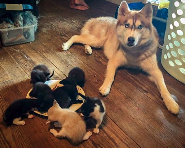 是英雄!哈士奇救出「7隻被密封奶貓」 回家當媽「放一排溫柔舔毛」:沒事了呦~