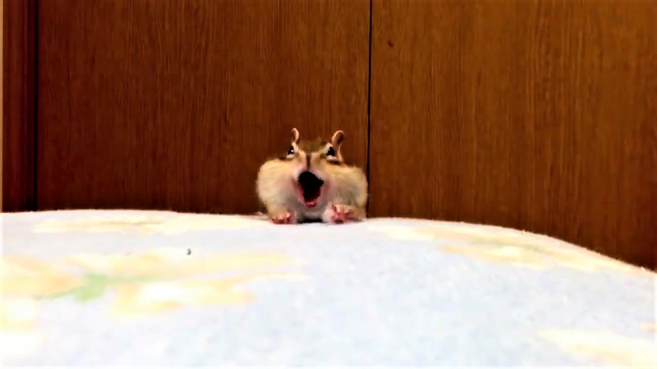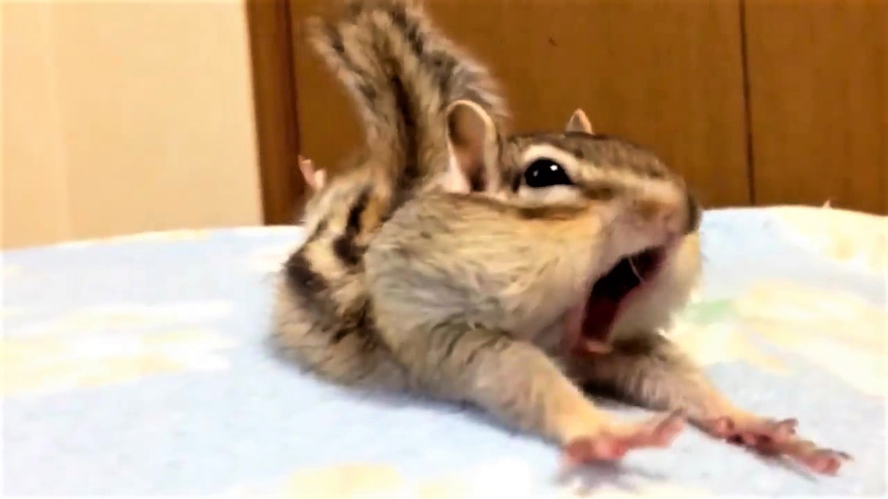 ▼小花栗鼠在床上衝浪時,忍不住打了個大大的哈欠。牠邊玩邊打哈欠,這模樣實在可愛: