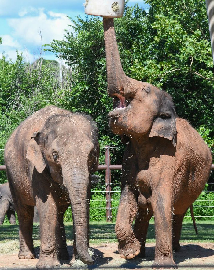 ▼現在Asha跟其他6隻大象生活在同一區域,分別是最年長的大象Bamboo、老公Rex、姐姐Chandra和Kandula,還有5歲和1歲的2個女兒。Asha懷孕期間胃口非常好,牠平時會吃乾草、青草和樹枝等主食,園方也會給牠提供各種水果。