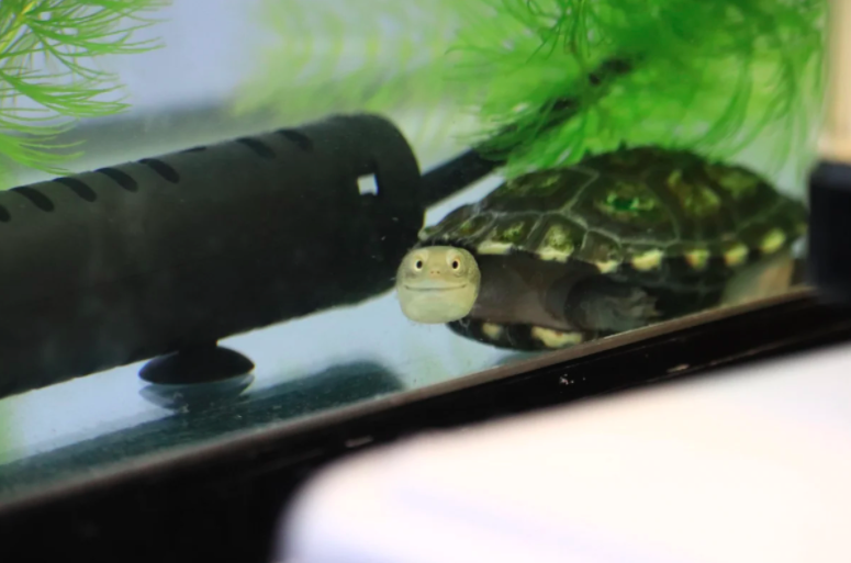 有人在拍偶!小烏龜轉頭秒露「謎之微笑」 尷尬又不失禮貌:拍好看一點嘿~
