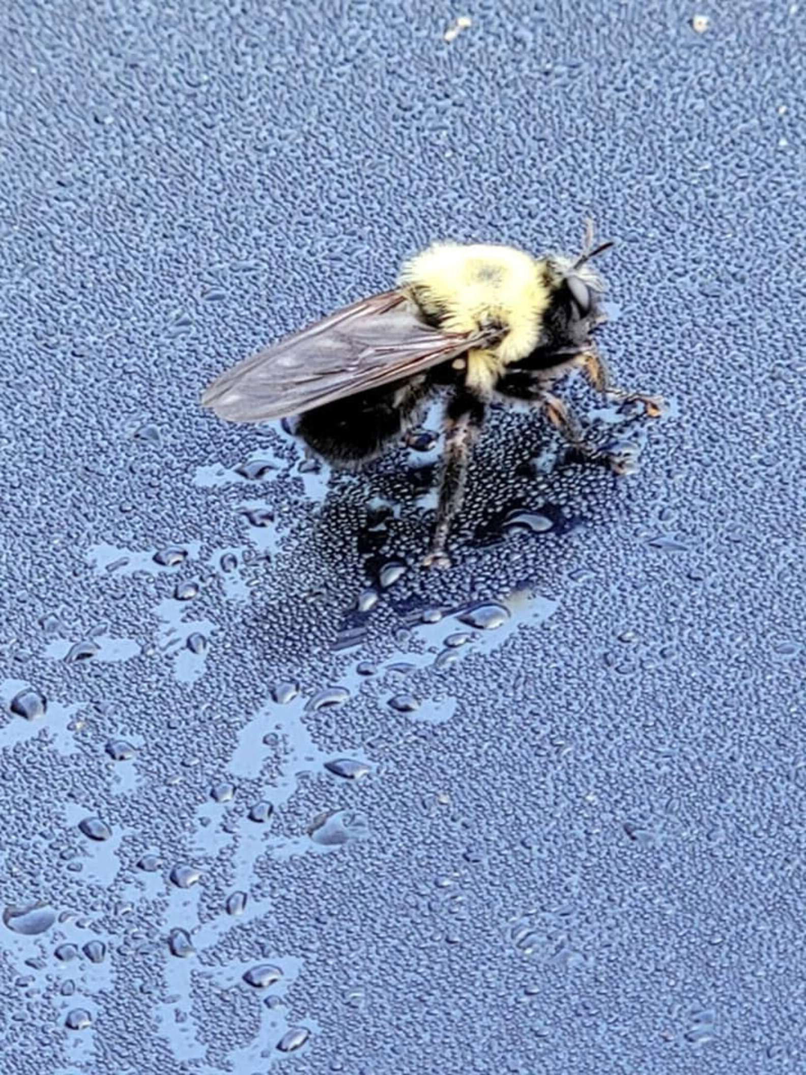 我路過!清晨大黃蜂爬過車窗 踩著露珠「留下一串小腳印」她驚喜拍下:要去哪~