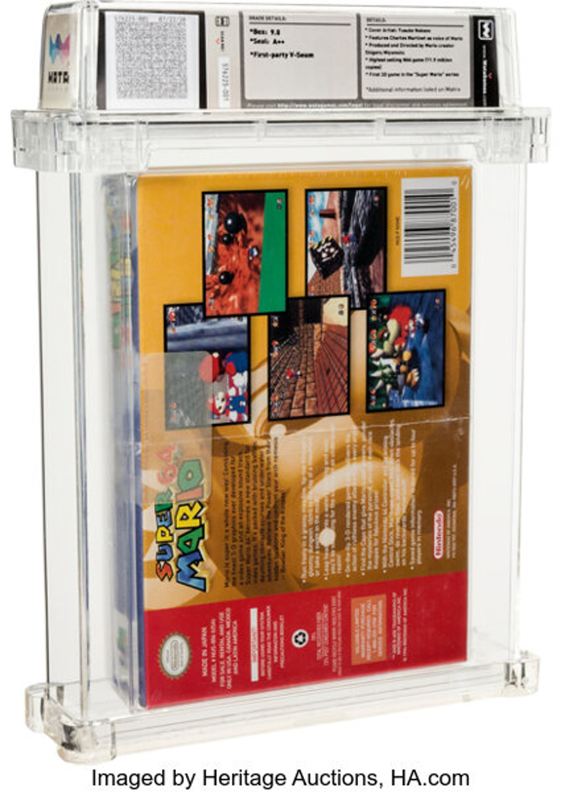 ▼《超級瑪利歐64》是「超級瑪利歐兄弟」系列首度推出的3D動作遊戲,引領了後代無數款遊戲,也是任天堂最熱賣的遊戲。這次拍賣公司「Heritage Auctions」拍賣的《超級瑪利歐64》遊戲卡匣,經過Wata Games鑑定後,評定其保存狀態分數為「9.8A++」(滿分10分)。
