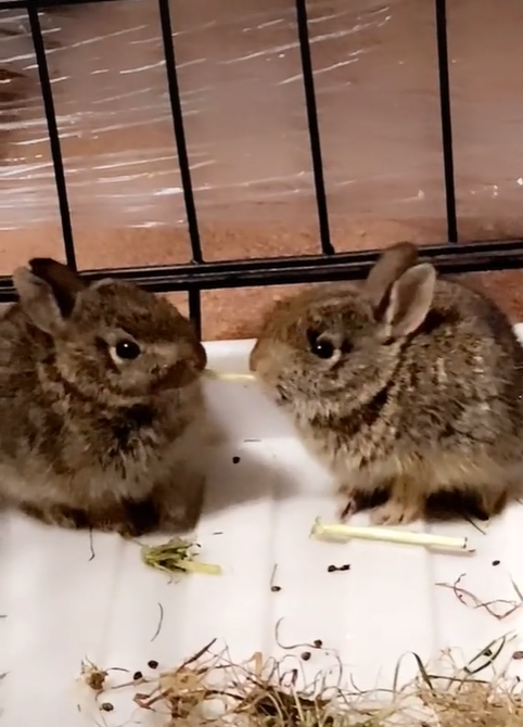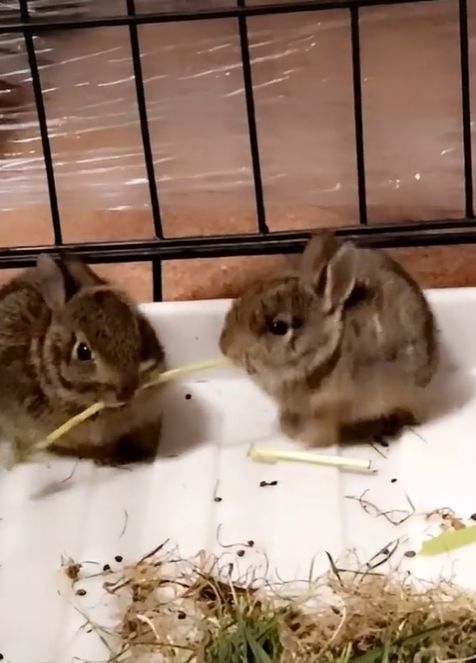 ▼這兩隻兔兔剛開始沒有發現吃到同一根草,牠們自顧自吃東西,沒想到吃著吃著竟然嘴巴碰觸、親到一起。牠們非常震驚,同時定格,四目相對的瞬間就像在演偶像劇一樣。如果這時候響起浪漫的BGM,那就更可愛了。