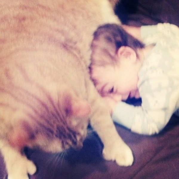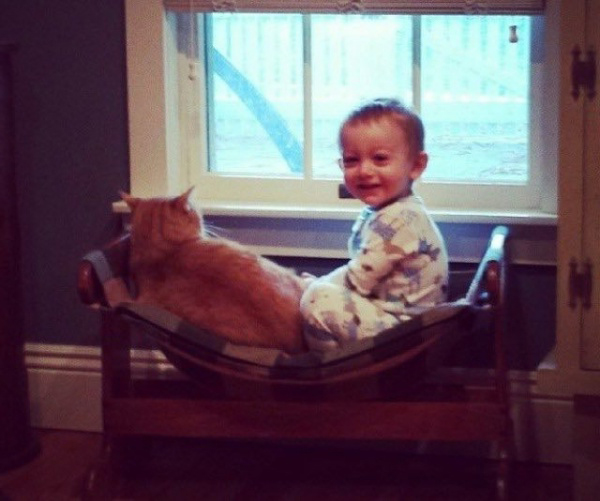 ▼馬麻表示:「Larry比想像中更加包容小孩子,而且牠擁有所有橘貓的可愛特質。」因為Larry,小主人經常露出笑容、發出歡快的笑聲。這個9個月大的男孩學會的第一個字竟然是「Yarry」,他其實想說「Larry」,但不太會發「L」的音。