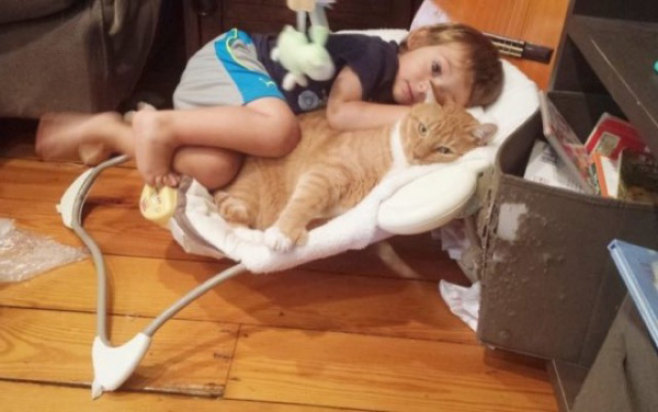 2021年08月03日國外有一隻叫Larry的2歲橘貓,因為牠會鑽到櫃子裡偷吃食物,讓前主人頭疼不已,於是前主人決定將牠送養。另外一家人正好想要一隻橘貓,得知消息後就收養了牠。Larry來到新家後,很快跟小主人成為好朋友,牠跟小主人時時刻刻黏在一起,簡直是小主人的守護者~