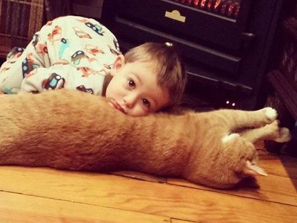 ▼在Larry的陪伴下,小主人一天天長大。他從這隻橘貓身上感受到了愛與耐心,未來一定也會變成一個溫柔的大人。