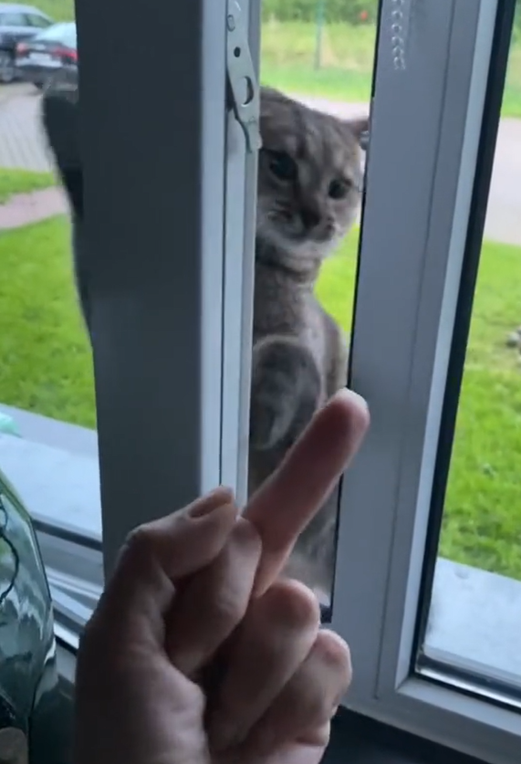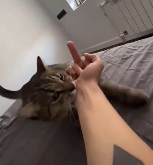 2021年07月22日貓咪懂得「比中指」的含義嗎?其他貓咪不知道,但下面這隻叫Bro的貓咪肯定懂。Bro的飼主很喜歡逗牠玩,雖然每次對Bro比中指都會被咬,但他並不收斂。飼主將自己對Bro比中指後,Bro的有趣反應拍下來,很快就引起網友們的關注。