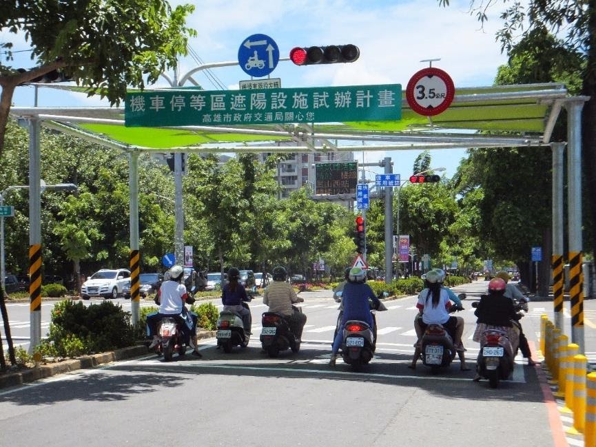 針對此問題,台南市議員蔡筱薇表示,台南機車約有130萬輛,幾乎等同於汽車總數70萬輛的2倍,她希望市府能選定適當路口作為示範區,設置機車專用遮陽棚,讓機車騎士等紅燈時不必再受日曬之苦。