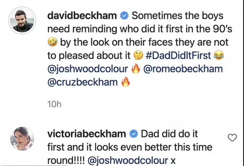 ▼維多利亞也力挺老公:「老爸是這個髮型的第一人,而且到現在這一輪髮型比賽中也是最好看的!」