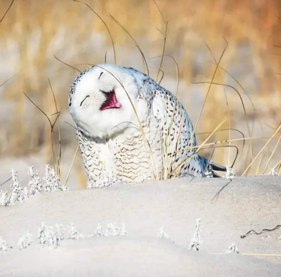 ▼除此之外,還有一些貓頭鷹露出笑容的照片,瞇起眼睛、張開嘴巴的貓頭鷹充滿喜感。
