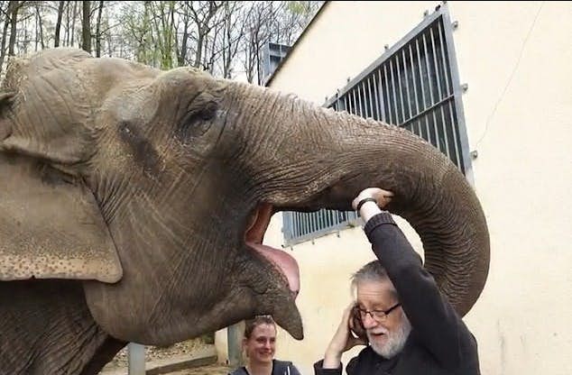 ▼Kristy曾待在英國北部的動物園、柏林動物園和德國的動物園。Peter非常思念Kristy,跟牠分別35年後終於知道牠目前住在德國動物園,於是立刻找了過去。Peter原本很擔心小象會忘了自己,但見面後才發現自己的擔憂都是多餘的。