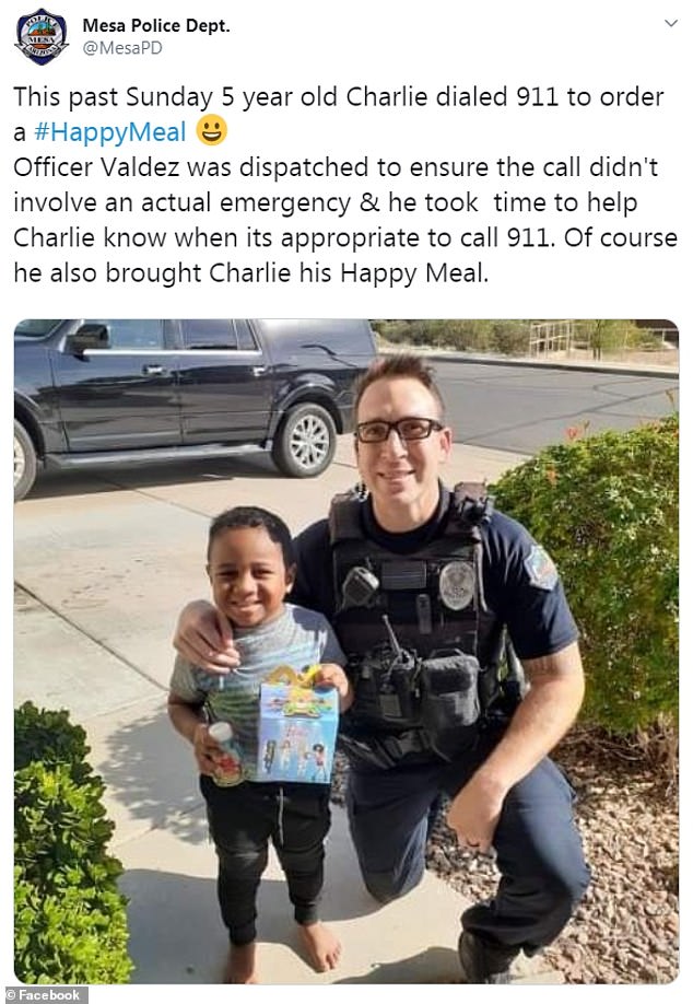 ▼Anthony跟Charlie的爸爸說:「這太有趣了。他問我是不是麥當勞,還想要一份歡樂兒童餐。一會兒會有警員去你家查看,誰知道呢,也許他會在麥當勞停一下。」果然,警員Randolph 'Scott' Valdez帶著歡樂兒童餐來到了Charlie家。