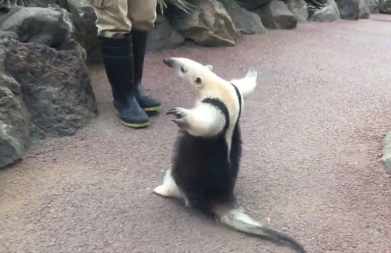 留下食物才准走! 屁孩「小食蟻獸」張手手攔住飼育員:踹共啊~