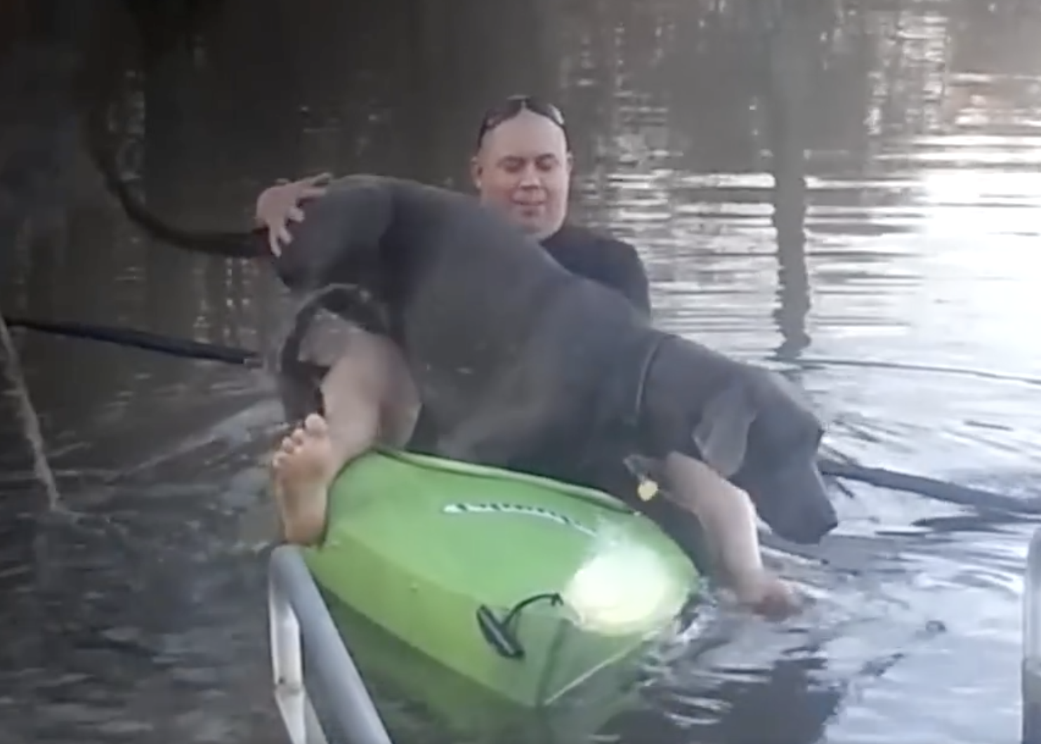 大丹犬黏人精! 怕水還要「硬擠身軀」進小船:把拔載偶~
