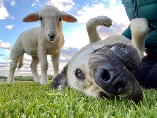 ▼Calliss解釋說,June出生後不久就被狐狸襲擊,頭部、腿部都受了重傷。幸好經過治療後沒有留下嚴重的後遺症。Abla平時會幫忙照顧羊群,牠跟June的感情非常好。Calliss說:「June喜歡農場裡的所有狗狗,尤其是Abla。牠們幾乎形影不離。」