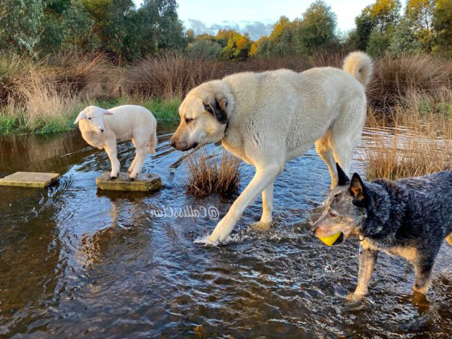 2021年08月06日澳洲南部林肯港的Jo Calliss經營著一間農場,農場中有2隻澳洲牧牛犬,還有一隻安那托利亞牧羊犬Abla。Abla經常幫Calliss牧羊,那天Calliss帶著狗狗和一隻小羊外出,穿過一條河流時小羊不敢渡河。Abla竟然默默走過去教小羊渡河,那模樣非常帥氣!