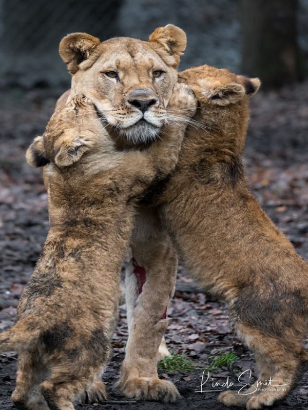 攝影師Linda Smit將獅子爸爸照顧小孩的畫面拍下來並po到網路上,網友們看到後笑說:「爸爸終於知道帶小孩的辛苦了」、「公獅心想:都是我生的,不能打,老婆會罵」、「看到媽回來大家應該都鬆了一口氣吧!XD」、「小獅們到底是有多委屈」。現在獅子爸爸終於知道老婆帶小孩有多累啦!