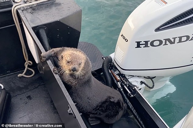 救獺獺啊~ 小海獺4度「跳上船」 跟人類求助:海裡有虎鯨在追偶QQ