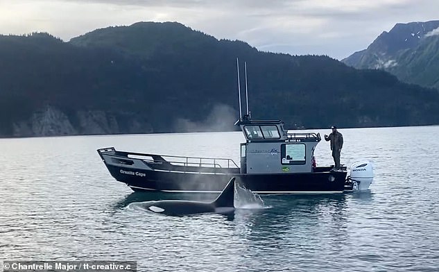 ▼當時John所在的觀光船正在大比目魚灣瀉湖上行駛,他遠遠看到一隻海獺正被虎鯨追捕。他本以為海獺無處可逃,沒想到海獺竟然會跳到他的船上來。虎鯨也在觀光船周圍徘徊,這壯觀的畫面讓John大開眼界。