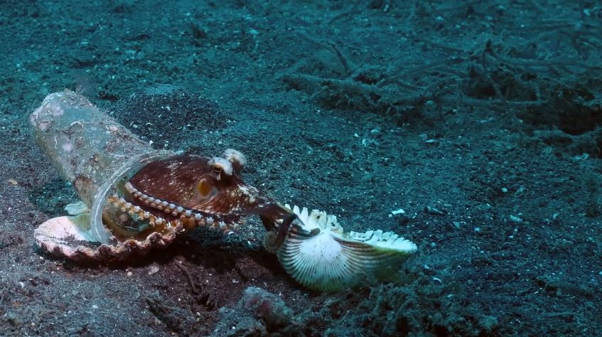 ▼Pall說:「這不是我第一次看到章魚把塑膠垃圾當成家。現在塑膠垃圾成為了海洋生物生活的一部分,塑膠杯這樣的『殼』根本沒辦法保護牠。」小型海洋生物將塑膠垃圾當成家,有時大型的捕獵者會把塑膠垃圾連同裡面的生物一起吃下肚,那就糟糕了。