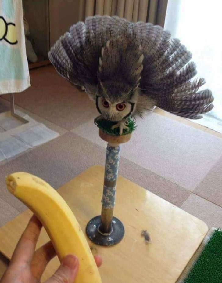 ▼貓頭鷹不喜歡香蕉,看見香蕉都不開心。