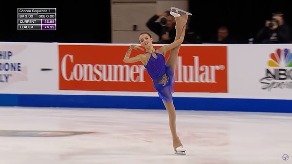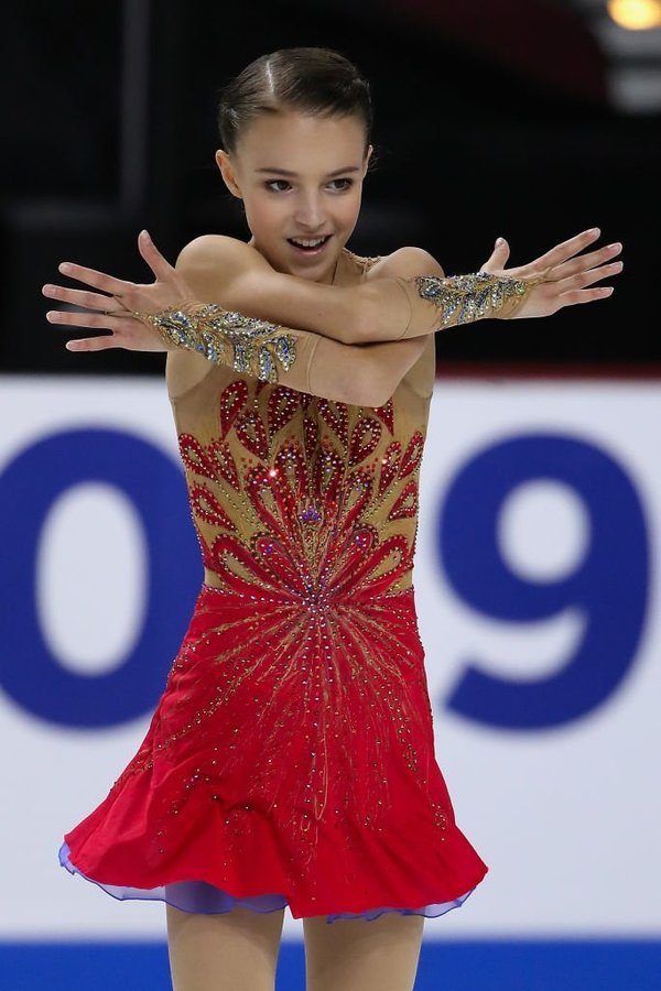 ▼Anna是第一個在國際比賽中完成2次勾手四周跳的女子成人組選手。她以總分227.76分拿到第一名,比第二名足足高出11分!