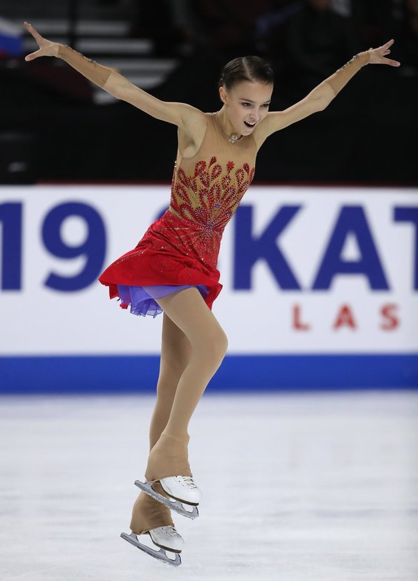 ▼花滑比賽分為短節目和自由滑。Anna去年第一次參加花滑大獎賽美國站的成人組賽事,在短節目後排第4。在接下來的自由滑中,她的表現超級棒,取得160.16分,創下個人新高。