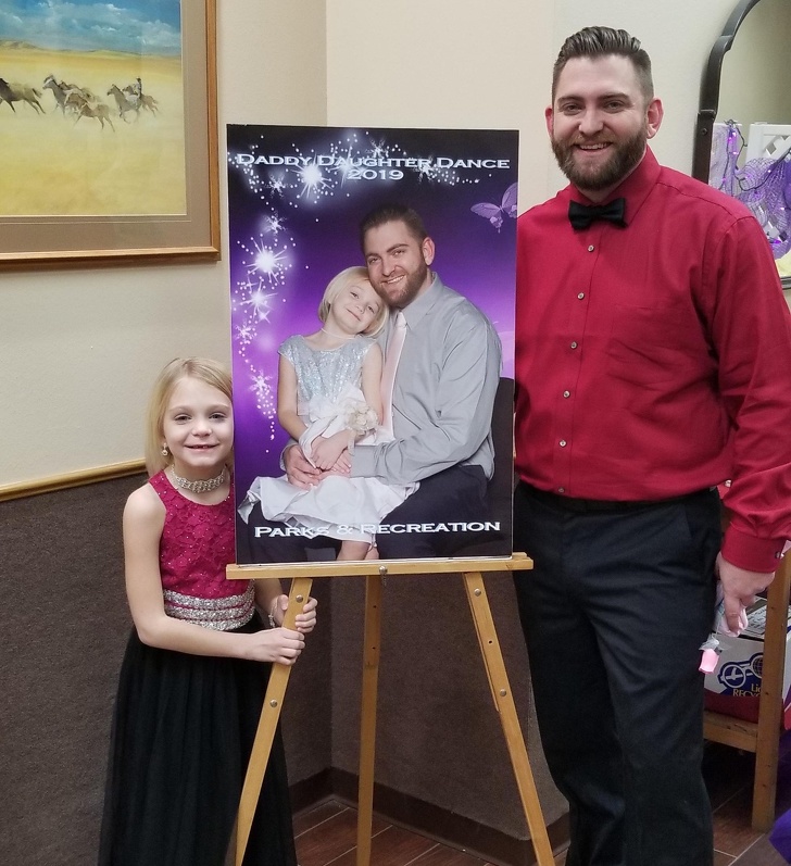 ▼他帶著女兒一起參加學校的舞蹈比賽,用了去年的照片做成海報讓女兒感覺自己是個大明星!