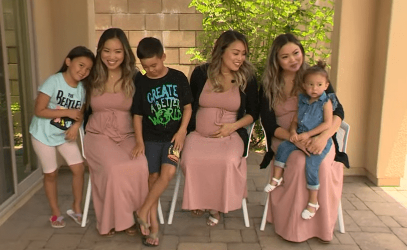 2021年08月10日南加州橙縣(Orange County)的一個家庭中有3個女兒,她們是出生時間僅相隔4分鐘的三胞胎姊妹。幾個月前3人竟同時懷孕,根據產檢結果,不久後她們會生下2男1女三個寶寶,這3個孩子在成長的過程中也能相互陪伴,真是一件值得慶祝的事。