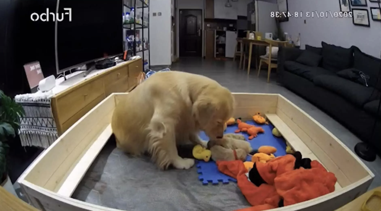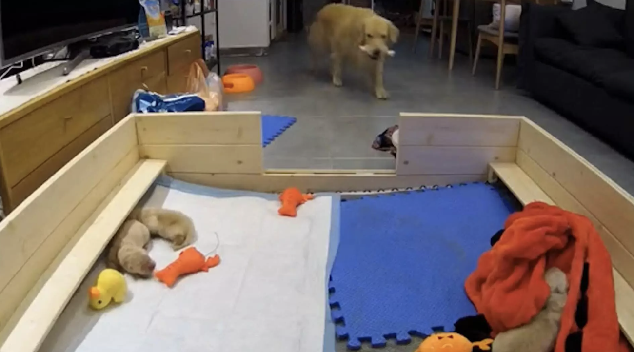 新手媽上路!大金金安撫狗寶寶 3小時叼玩具「來回造」:鼻要哭了啦~