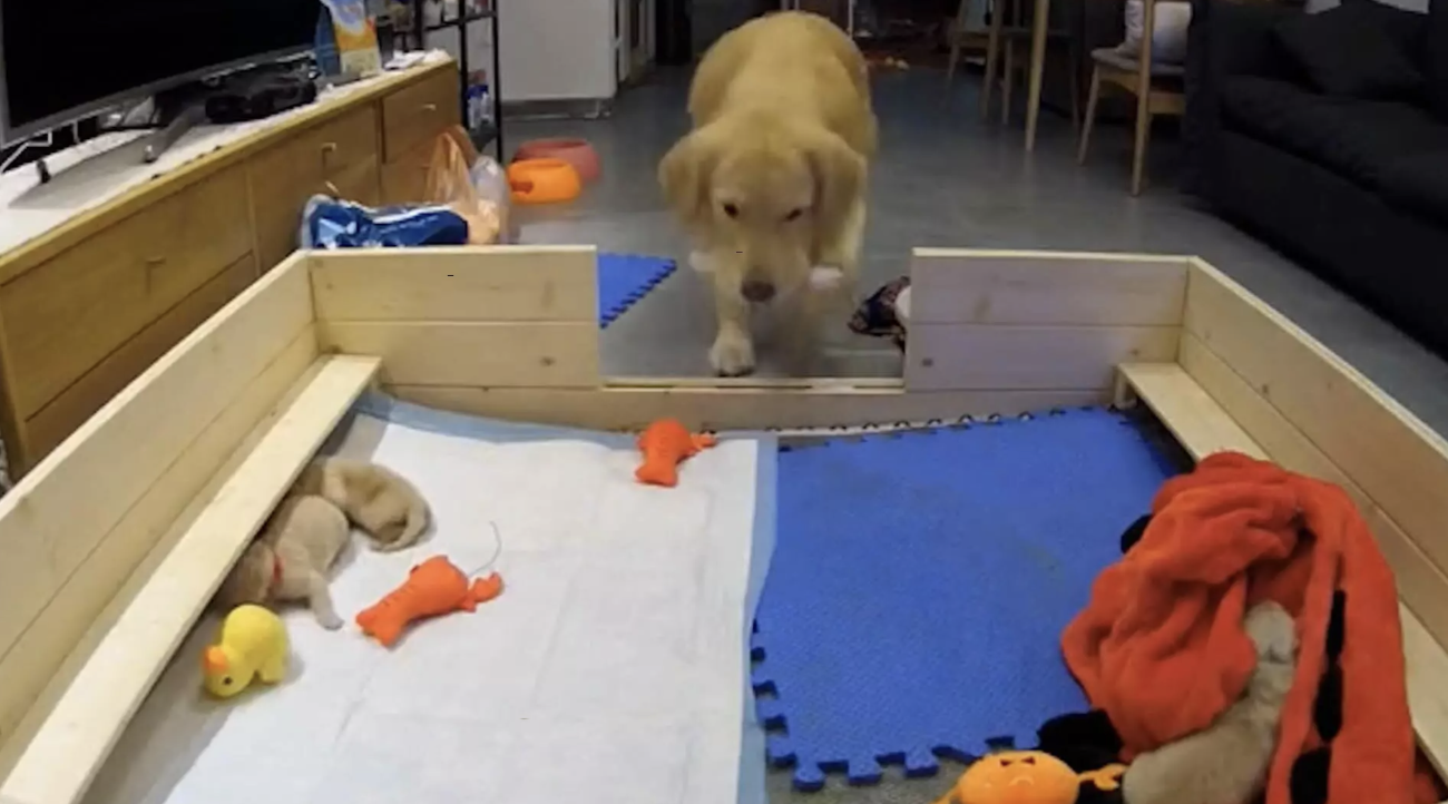 2021年08月11日母親會把全部的愛都留給自己的小孩,不僅人類是這樣,動物也一樣!大陸鄭州有一隻黃金獵犬Yami,去年10月牠生下3隻寶寶。這是Yami第一次當媽媽,牠沒有照顧寶寶的經驗,所以看到狗寶寶們哭鬧不停,顯得手足無措、非常慌亂。主人回家後查看監視器畫面,看到Yami照顧寶寶的一幕,心都要融化了。