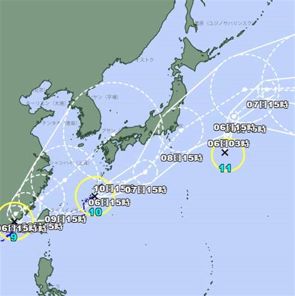 ▼氣象局表示,銀河颱風正在琉球附近海面,距台灣約520公里,未來將朝日本方向前進。日本東南方海面的颱風妮妲距離台灣遙遠,未來將往北再轉東北方向前進。不過這兩個颱風對台灣都沒有直接影響。