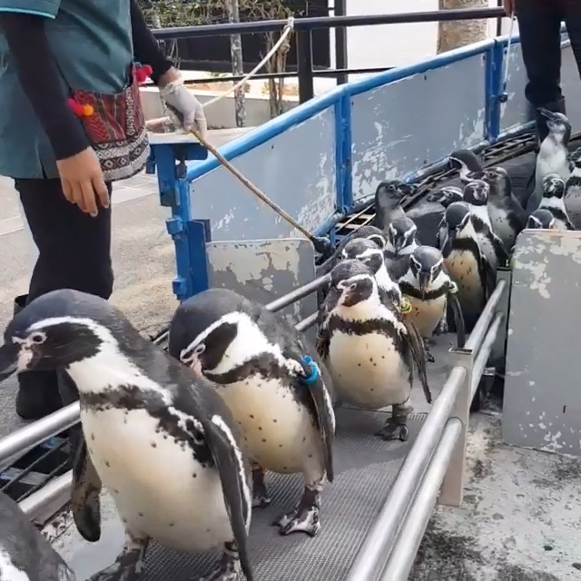 ▼「Khao Kheow Open Zoo」的飼養員每天都會像往常一樣,帶41隻企鵝外出散步,讓牠們多多運動、鍛鍊身體,同時還能紓解壓力。園方經常會將企鵝散步的可愛影片po到臉書粉專上,只見企鵝們排著隊搖搖晃晃往前走,看起來萌萌的。